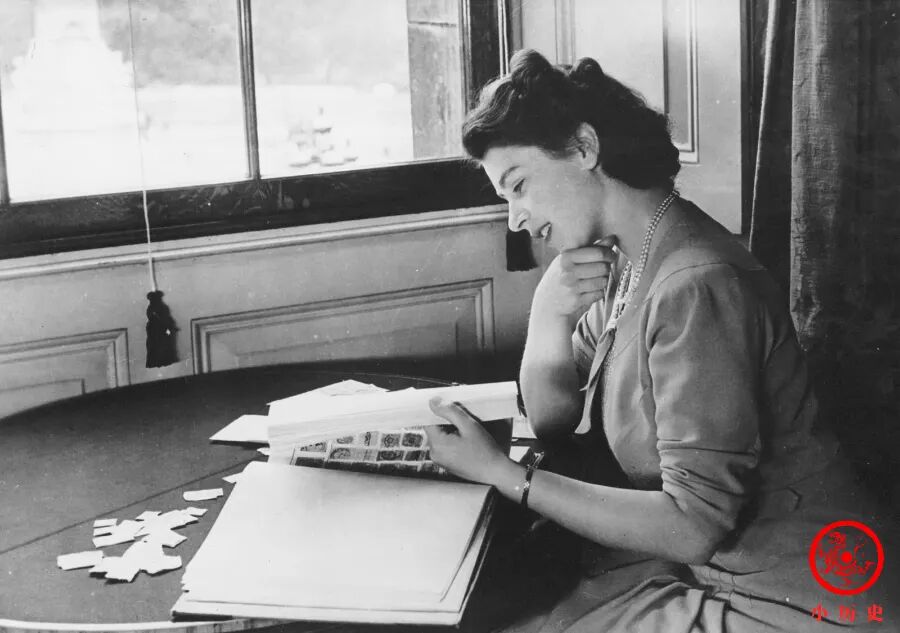 1947年伊丽莎白看邮册。