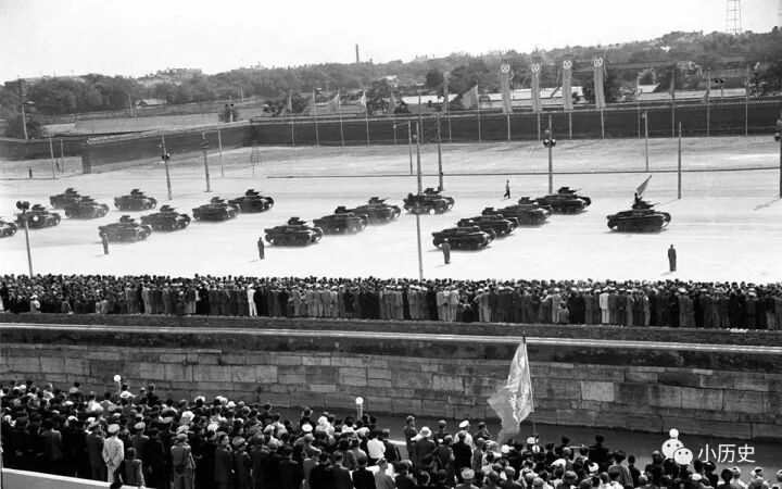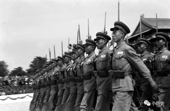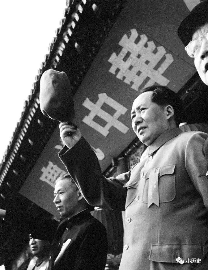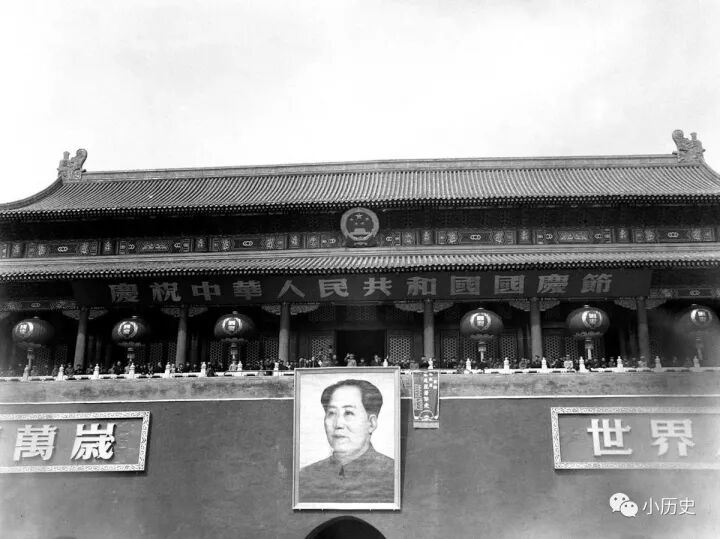 1950年10月1日是新中国成立后的第一个国庆节,天安门广场上举行了盛大的阅兵仪式,之后又有40万群众通过检阅台。
