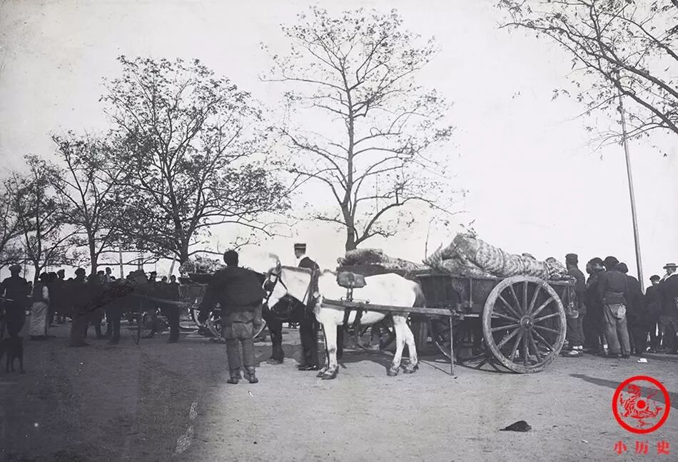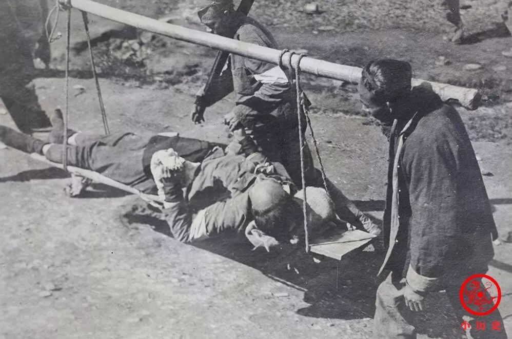 红十字会工作人员运走死在医院里的伤兵,每天早晨都会运走一批。
