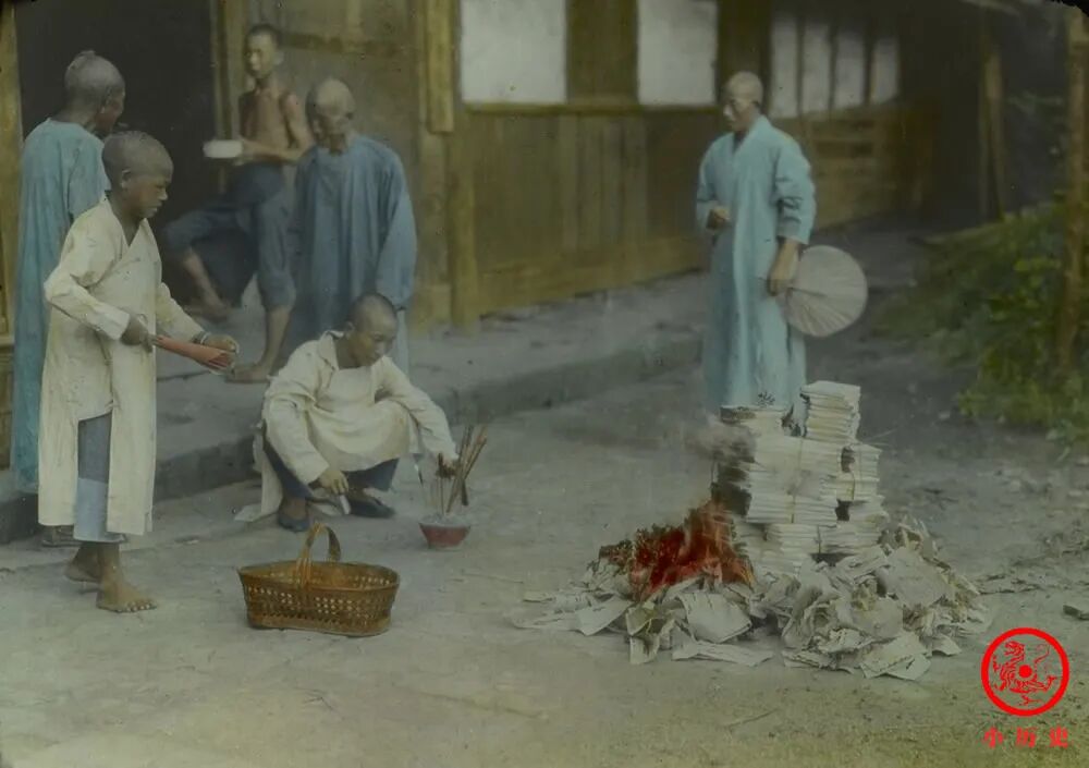 那两位少年穿着孝衣,神情悲伤,烧了一大堆纸钱祭奠逝去的亲人。