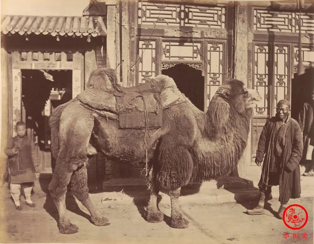 清朝北京街头贩运货物的骆驼非常普遍,百姓的很多生活必需品都由骆驼运来,比如西山的煤、食盐。