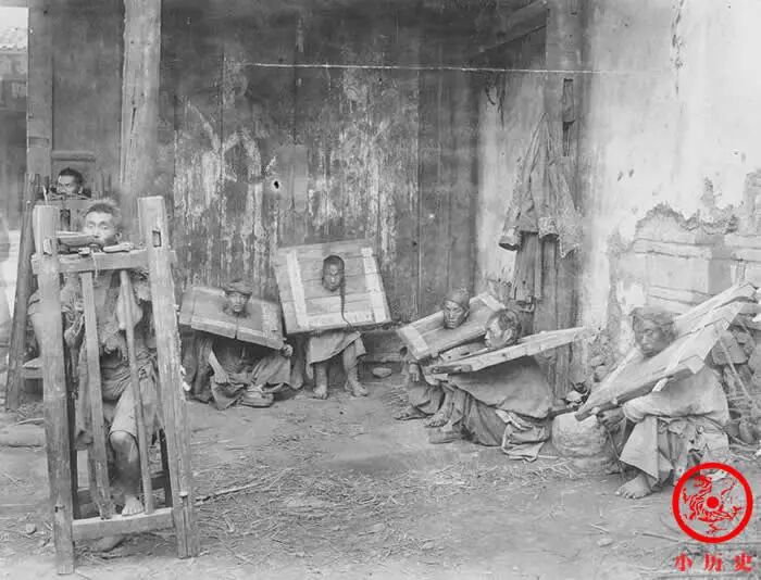 戴枷示众是《大清律例》规定的刑罚,用多重的枷板、戴枷多长时间,都有相应的规定;站笼是法外之刑,律例没有明文,由地方官自己设定,各地的形制也不一,有的站笼让囚犯的脚悬空,直接致人死命。