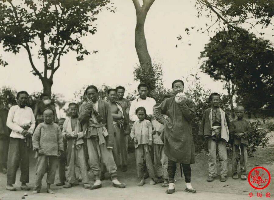 摄影师Thomas Chrowder Chamberlin扛着照相机来到卫辉一个村庄,农民们好奇地围观这个陌生人和他手里的陌生机器,而Chamberlin顺势定格了他们的表情和姿态。照片中一些人在吃饭,有人吃完后又在舔碗。旧社会农民生活艰难穷困,每一粒粮食都来之不易,舔碗也是不浪费粮食的举动。