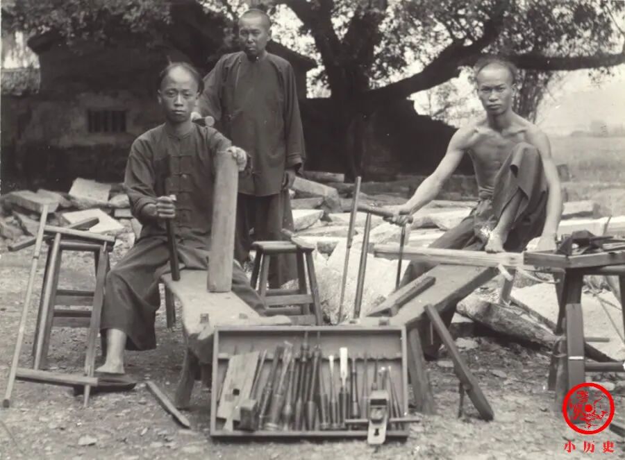 3位木匠使用的工具在20种以上,锯子、刨子、凿子、斧子、墨斗等等,相信还有更多的工具没有展示出来。工具越多,说明工艺精细,这一行的技术含量也就越高。常言道“十个木工九断指”,就是说做木匠有一定的危险性,受伤是常有的事。