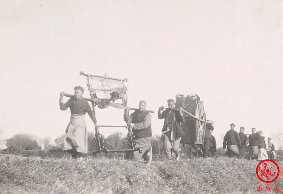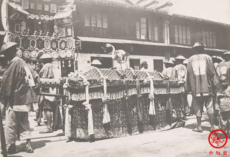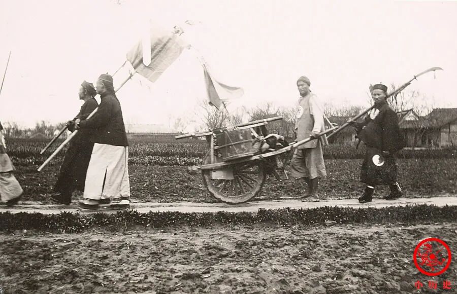 棺材上罩着布帏,饰有精美图案,且杠夫身上都缀着补子,说明死者有一定的政治地位,但也不会太高。