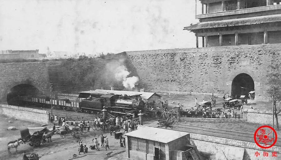 1901年,清廷打通崇文门瓮城,将铁轨从永定门外铺设至前门车站。为了确保通行安全,城门前安装了闸门,由人工控制,火车不通过时,闸门开放,行人、车辆可随意走动。那时都是蒸汽机车,火车一过,浓烟滚滚。