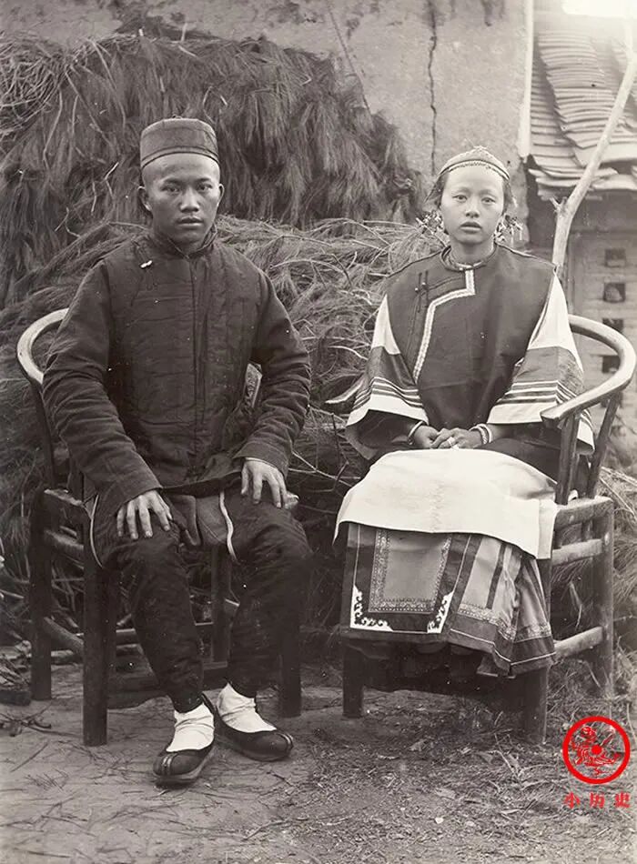 他们衣着干净整洁,想必家庭条件不错。女子所穿袄裙是明朝沿袭下来的风格,有浓厚的传统特色,属于汉服体系。男子的着装属于旗人服饰系列,是清初“剃发易服”的结果。