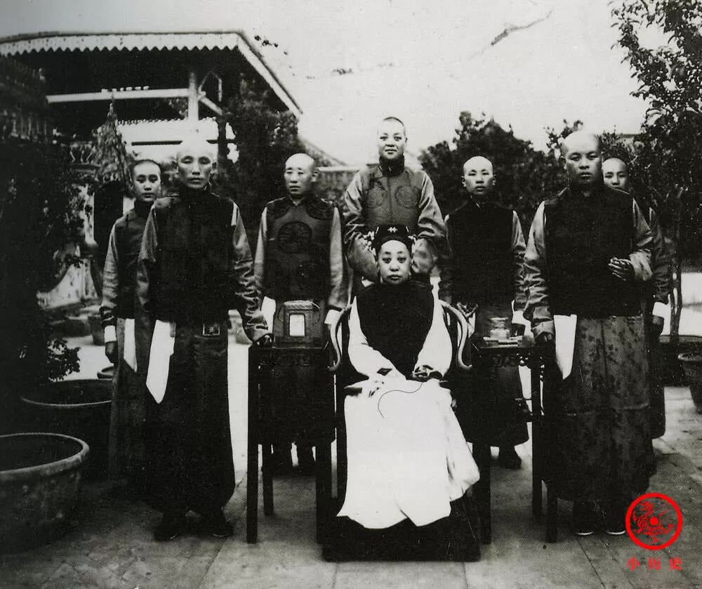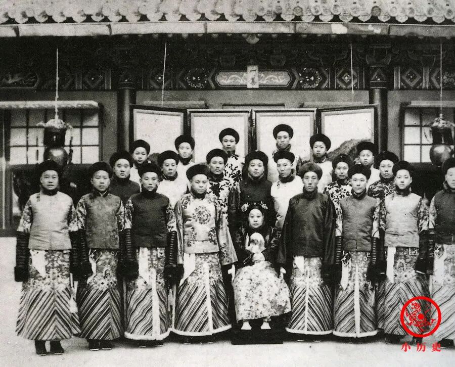 端康太妃与婉容(后排左二)、文绣(后排左三)等人合影。