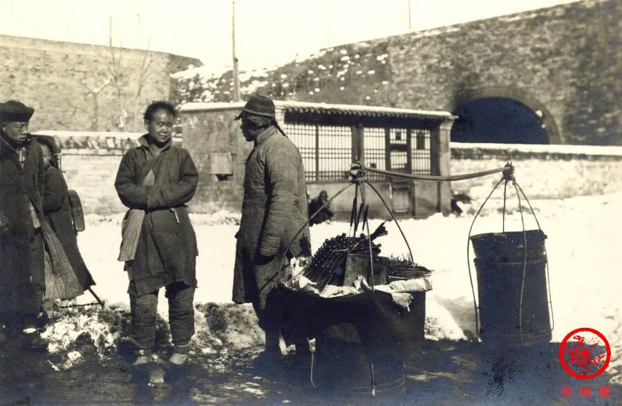 冬天里,吃酸酸甜甜的冰糖葫芦是一件美好的事情,小时候如此,长大了也这样,吃一串能开心一整天,所以看到这张照片我就流口水了。那位摊主挑着扁担,一头的筐里装满了做好的冰糖葫芦,另一头装着熬糖浆的锅炉,边做边卖,生意肯定不错。