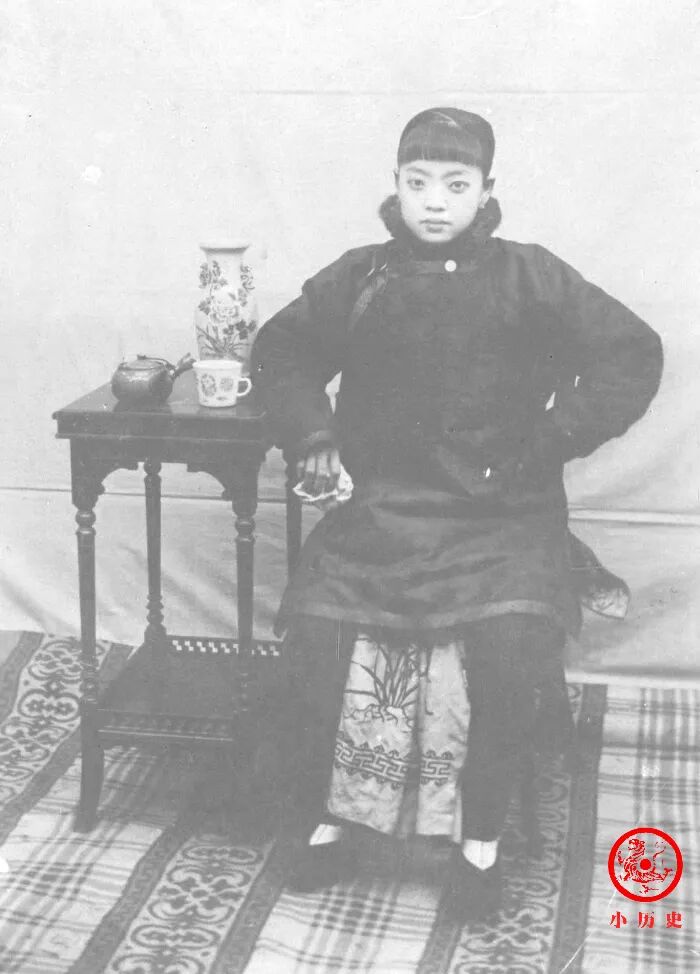 这位女子年轻美丽,长相清秀,即便以现在的审美眼光来看,仍然属于美女。除了那身袄裤显得过时,发型与妆容均不失时尚之感。