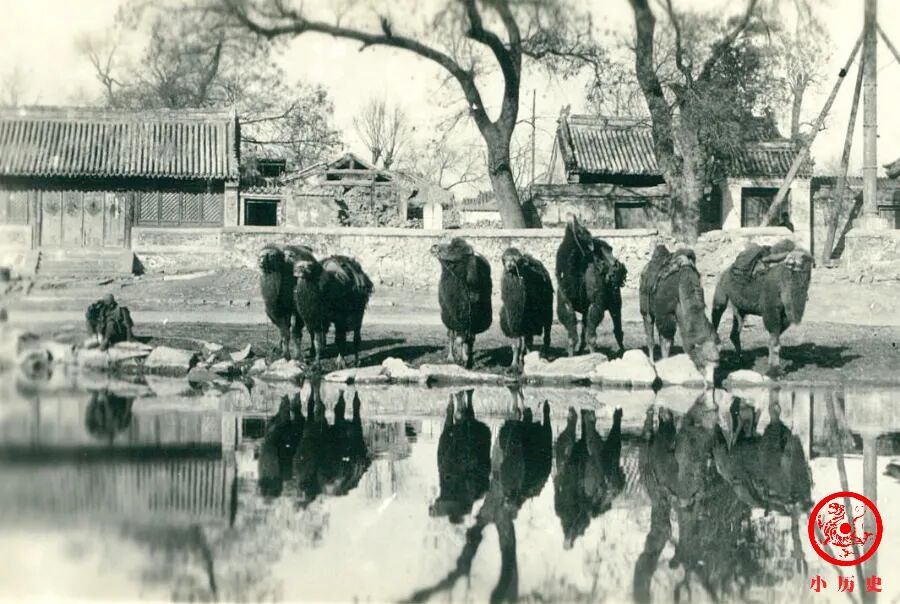 长途跋涉的骆驼渴了,赶驼人就让它们在路边喝起了水,他自己也坐下来歇息。那个年代城市的路面没有硬化,一下雨总是留下没膝的积水,给人们的出行带来很多不便,倒是给过往的牲畜提供了随时解渴的便利。