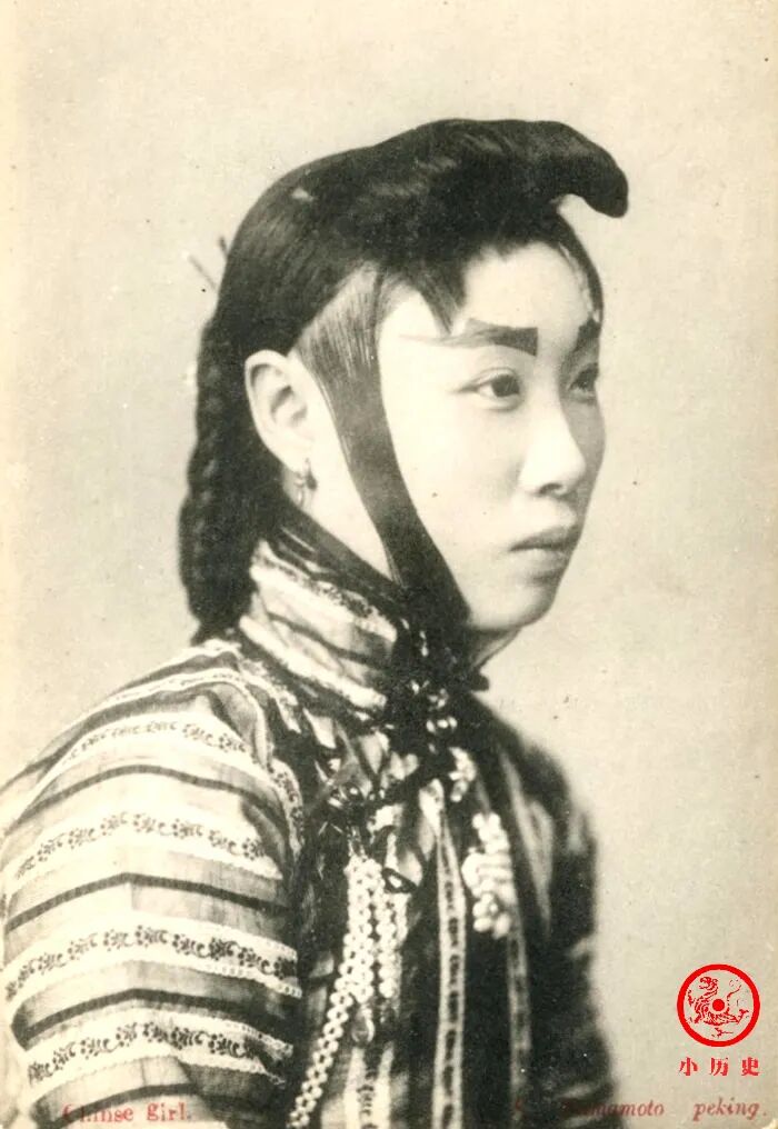 照片的解释说这是一位中国女子,但我看其面相像是男人,男扮女装,尤其眉毛很夸张,现实中不会有人这么画,明显是戏剧扮相。旧社会戏剧中没有女演员,女性角色都由男演员出演。