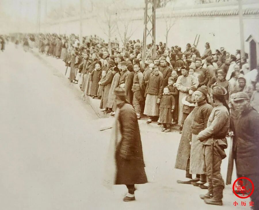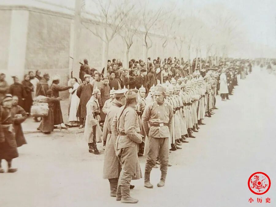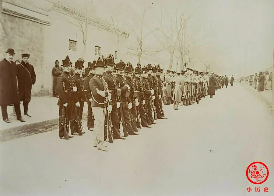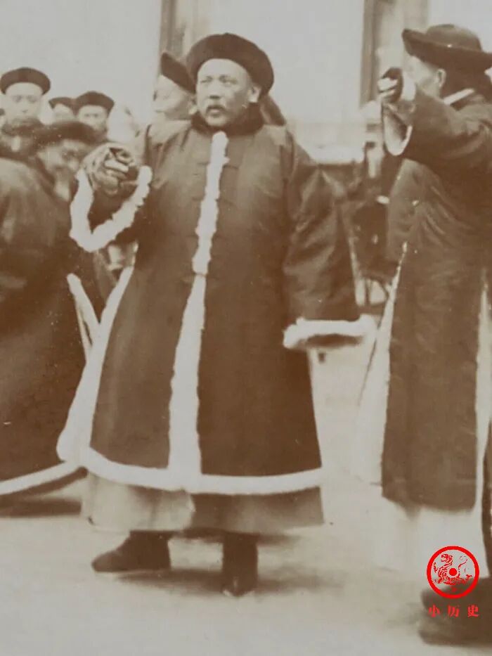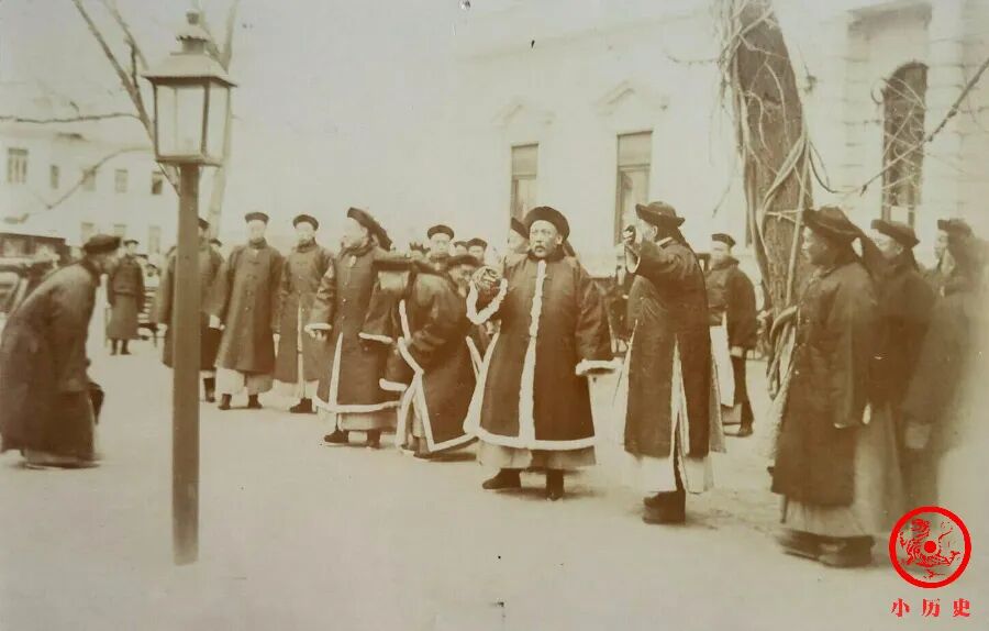 我们通过现场照片看到,那桐、袁世凯等人身穿冬季官服来到东交民巷。弯腰与人行打千礼的那位,就是那桐,他备受朝廷的信任;那桐旁边与人聊天那位正是袁世凯,他在当年下半年,慈禧太后和光绪帝去世后,即被免除一切职务,回了老家。
