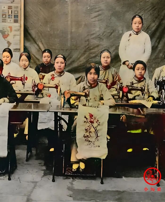 一组老照片,展示晚清时期女性的生活。注:本文所选用的照片使用了AI上色。