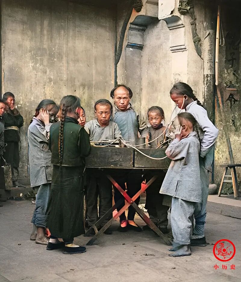 在街头,孩子们戴着“耳机”,入迷地收听音乐或者讲故事的声音。很难想象,弄一台留声机摆在街头,就能赚钱了。不过说实话,这个玩意儿在当时有点科技含量,很多人对它感到好奇。