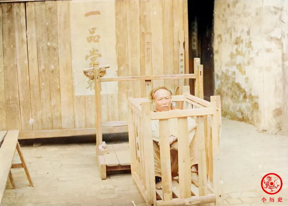 这名男子叫杜朱衣,像狗一样被关在囚笼中,手脚都被铁链捆绑着。1895年,他与数十名同伙在福建古田行凶,经官府审判后被判处极刑。