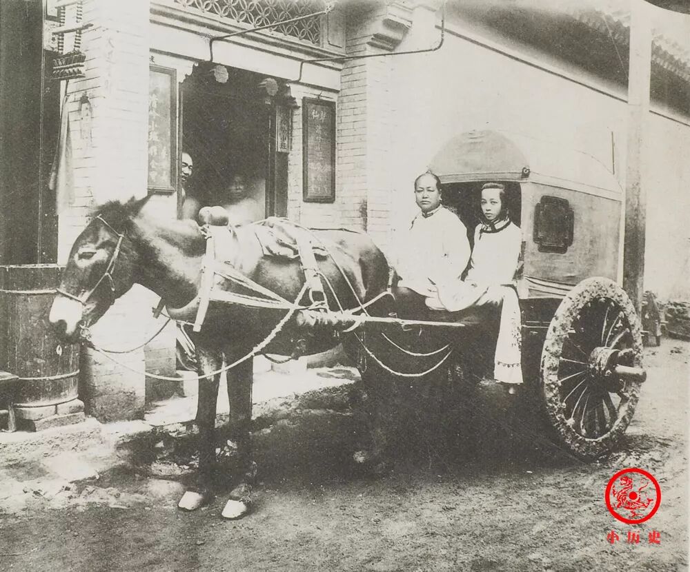 青楼女子(右)坐骡车出街,前往指定地点陪侍客人。