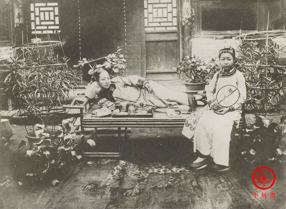吸鸦片的八旗上层妇女。鸦片深深毒害了晚清社会肌体。
