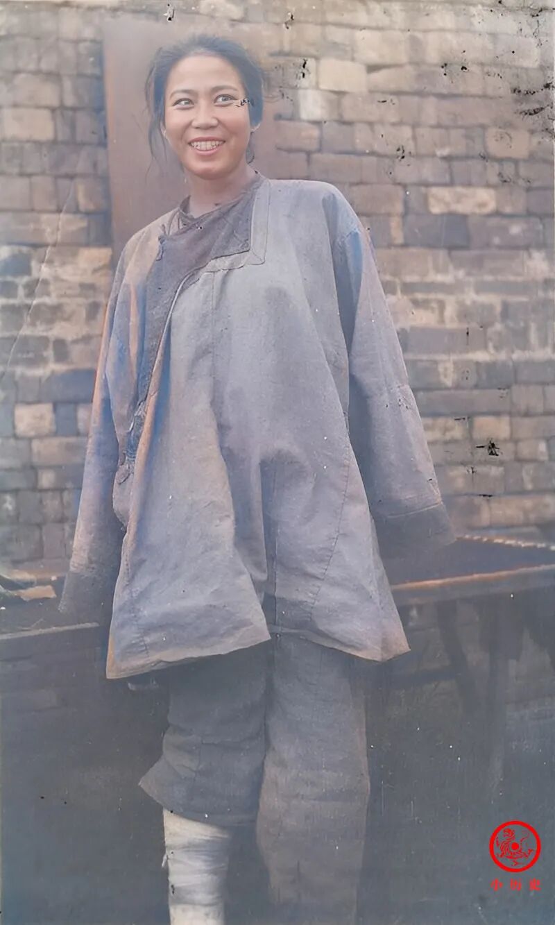 这名女孩19岁,居住在江苏省,她为什么这么开心?原来她在采摘樱桃时摔倒在地,双腿开放性骨折,随后被送到洛伦佐和鲁斯医院(Lorenzo and Ruth Bennett Morgan),治疗三个月后康复。这张照片拍摄于她出院之际,她满面笑容,时隔100多年,我们仍能感受到她的兴奋与快乐。