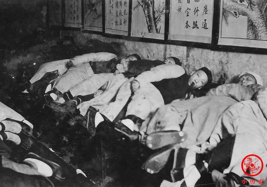 晚清城市里开设的鸦片烟馆,就像现在街头的便利店一样普遍。不过烟馆也有高档和低档之分,像照片里这种拥挤不堪的,显然属于低档。高档烟馆不仅装修豪华,还设有雅间,提供茶水、点心。