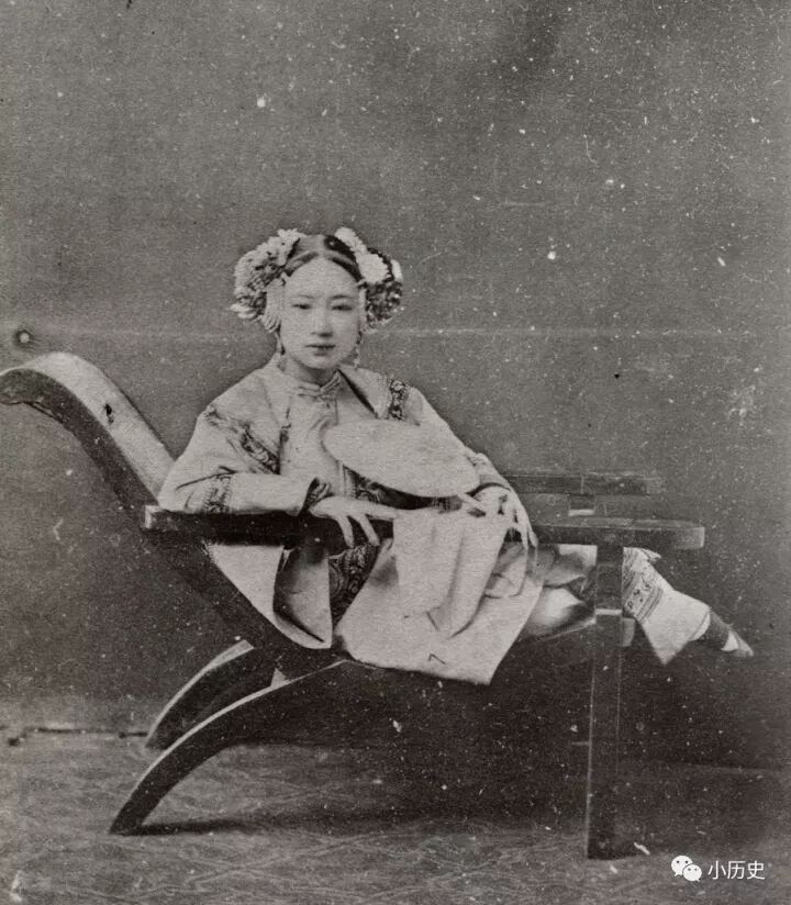 以半躺姿势摆拍的晚清青楼女子。