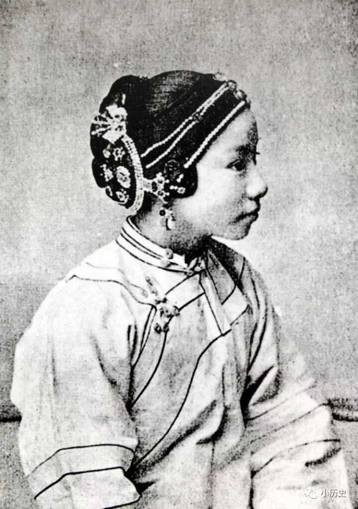 晚清青楼女子肖像照,这是一张大小如同名片的小幅照片。