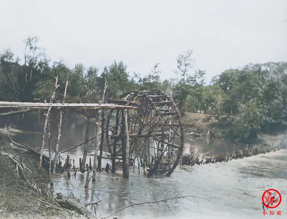 水车直径达10米,呈放射状向四周展开,每根辐条的顶端都带着一个刮板和水斗(竹筒)。刮板刮水,水斗装水。河水冲来,借着水势的运动惯性缓缓转动着辐条,一个个水斗装满了河水被逐级提升上去。临顶,水斗又自然倾斜,将水注入渡槽,流到岸边的农田里。
