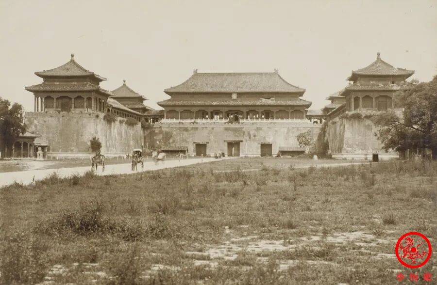 这一幕发生在庚子事变之后。慈禧太后和光绪帝跑到了西安,紫禁城里没有了主人,那些留守的太监不愿意干活,任由杂草疯长。老佛爷要是看到这张照片,不知作何感想?