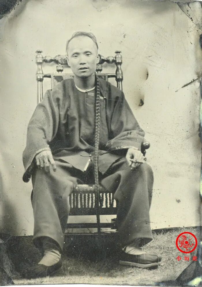 摄影师为他拍照时,特意把大辫子撩到了前面,以展示让西方人费解的发式。大辫子很不卫生也不利于劳作,但晚清时几乎所有男子都视为宝贝,舍不得剪掉。