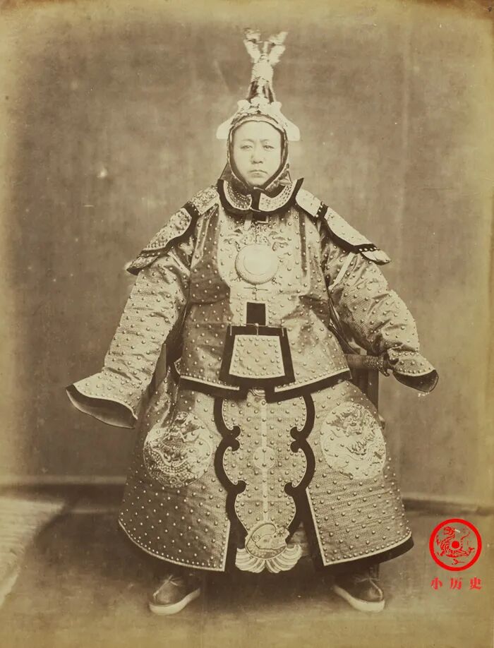 这件铠甲原为男人所穿,明显过于沉重肥大,没有让她露出“威武”的一面,反而让她看上去很滑稽。旗人女子性格比较奔放,喜欢尝试新鲜事物,不像汉族女子那样受到礼教的种种束缚。