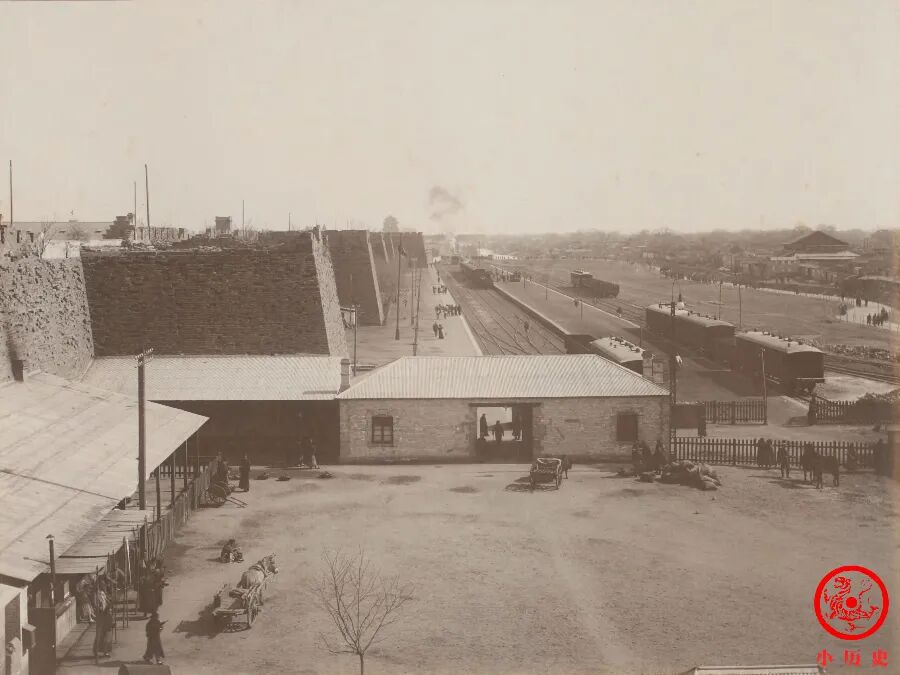 前门外东火车站位于箭楼以东,始建于1903年,英国人修建,1906年建成并投用。京奉铁路由此始发,是当时全国最大的火车站。车站北面临近东交民巷,南面是前门商业区。