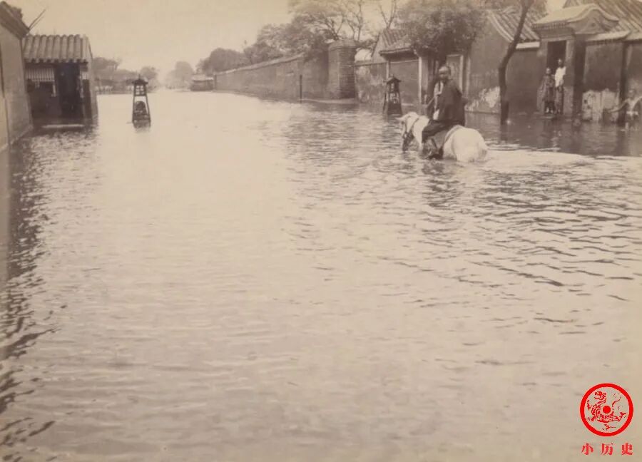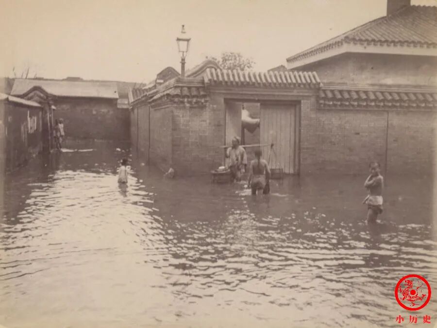 1893年,北京街道的积水齐腰深。照片来自穆意索《北京相册》。