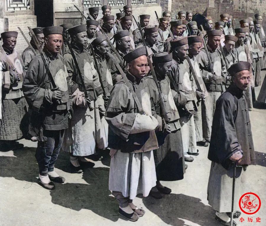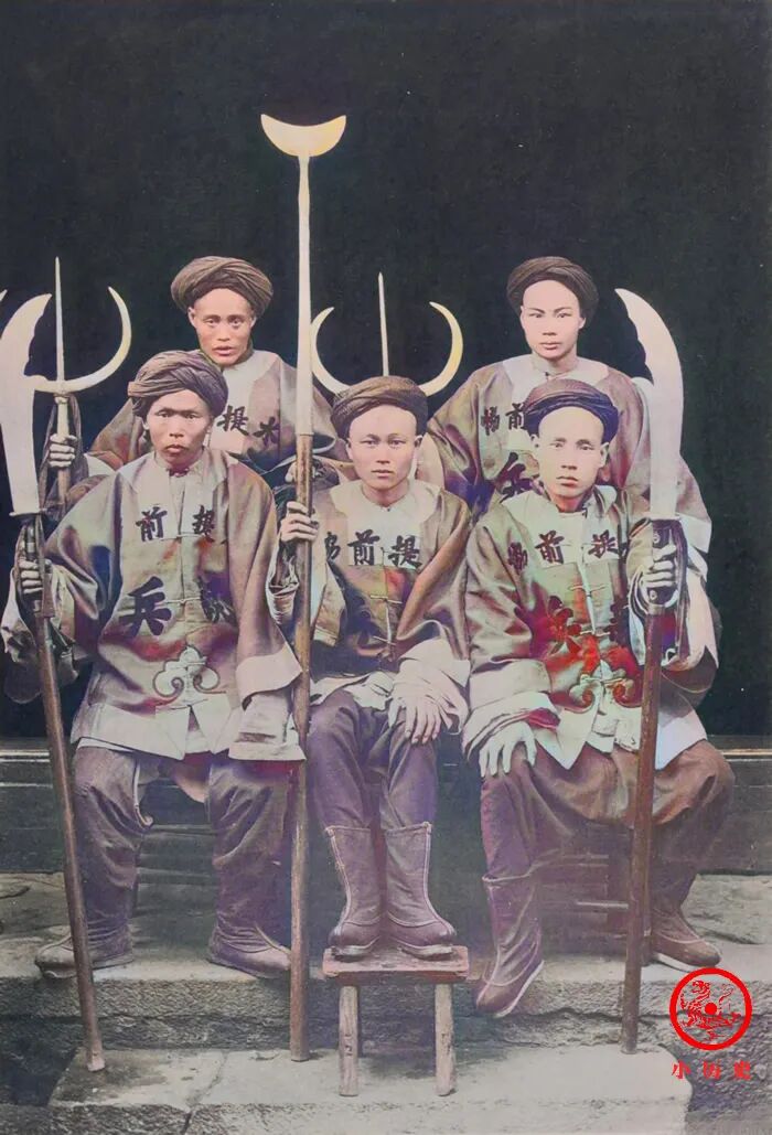 这些士兵装备刀、叉、钺等冷兵器,号衣上印有“水提前协亲兵”的标志。他们是水师提督的贴身护卫,平时负责警戒和传递消息,一旦战争爆发,会跟随提督赶往前线,冲锋陷阵,表现出忠诚、勇敢的品质。然而,就他们手中的武器而言,不知道能不能有效防御敌人的枪炮?
