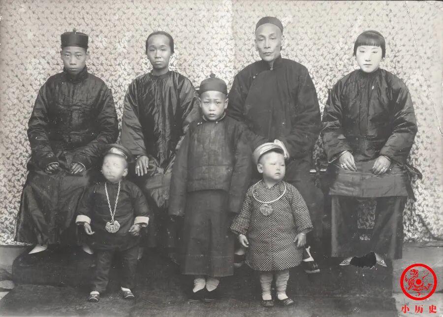 Sup Kem(后排右二)是清朝海关官员杜德维(EdwardBangs Drew)家的大管家。后排左二是他的妻子,后排右一是他的女儿,后排左一、前排左二是他的两个养子,前排另外两个小朋友是他的两个侄子。