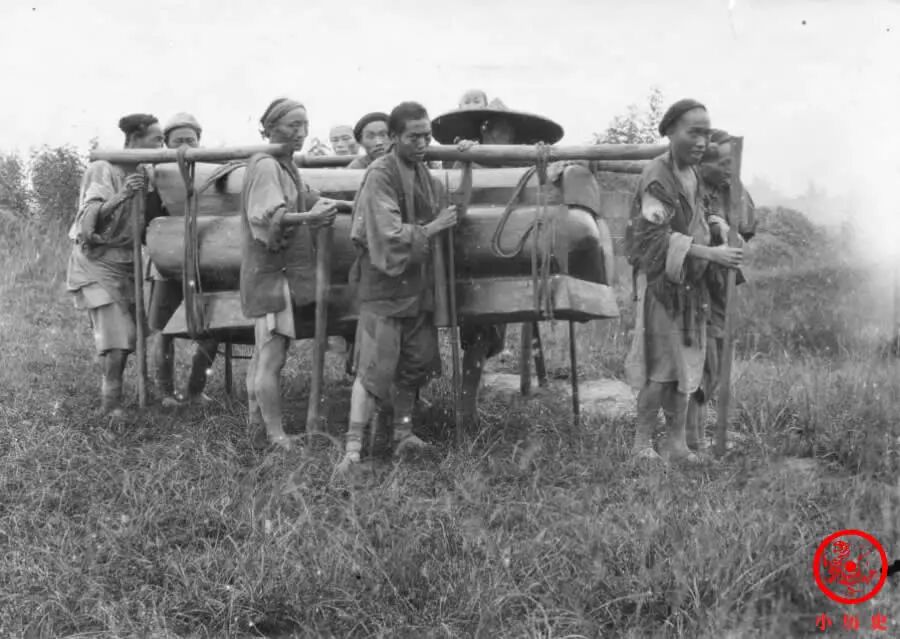 这个场景不是葬礼,而是棺材铺将棺材送到订购人家里。以前人们往往会提前准备棺材(现在部分农村仍保留此习俗)放在家里,称为寿材。此举并非不吉利,反而有添寿的美好期待。