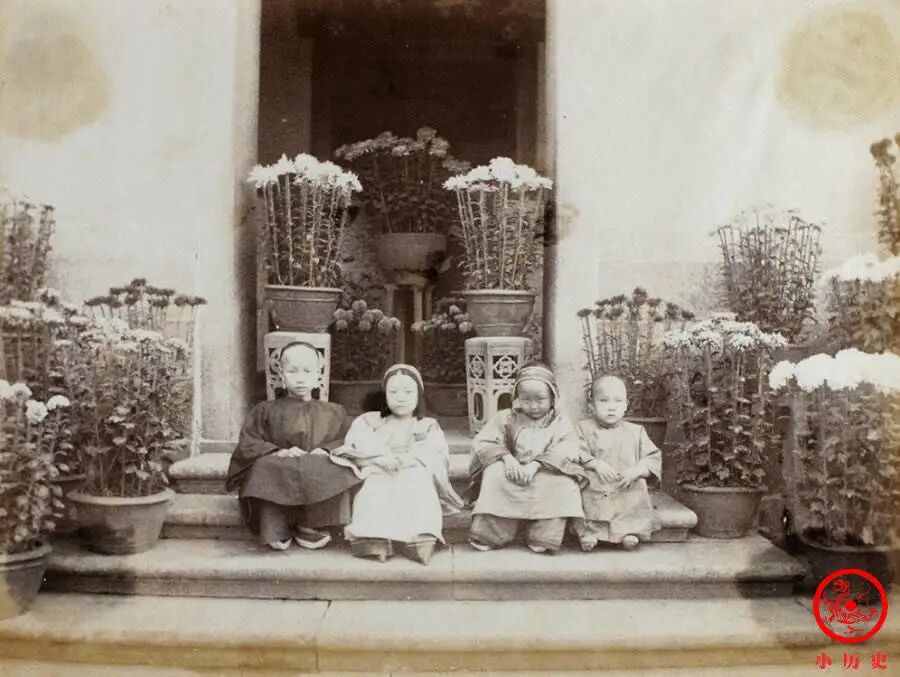 100多年前,4个孩子的装束风格各不相同;与现在儿童的穿着相比,更是差别巨大。