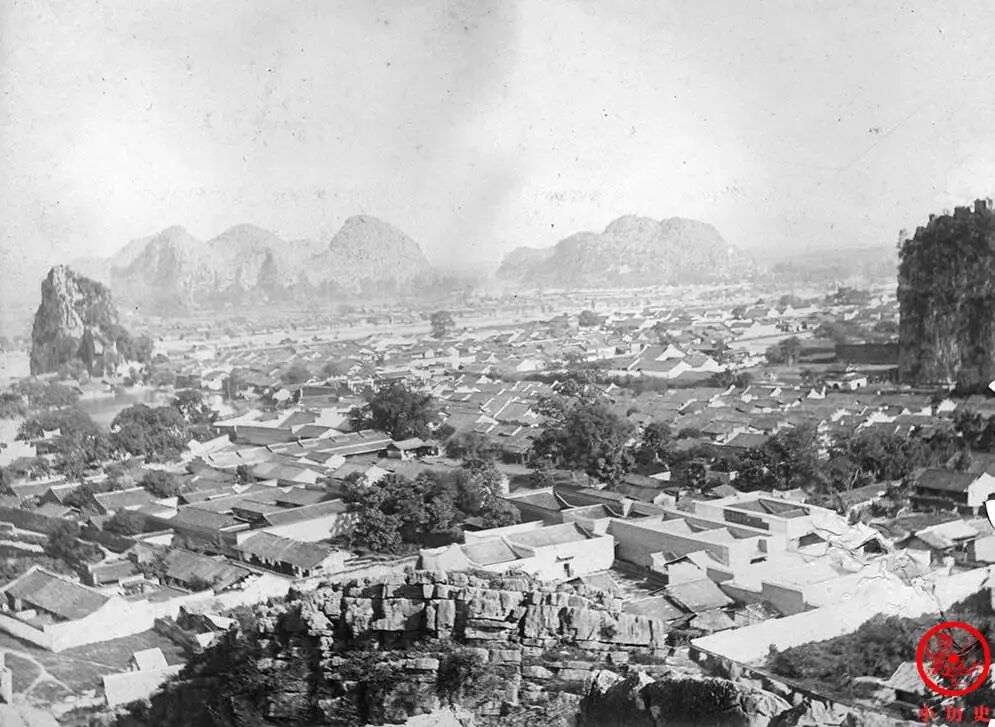 桂林是一座历史文化名城,风光独特,通过这张黑白照片也能感受到她古朴的美感。古人曾用这样一首诗来描写桂林的诗情画意:“上到青林杪,凭栏尽桂州。千峰环野立,一水抱城流。沙际分鱼艇,烟中见寺楼。不知垂去客,更得几回游。”