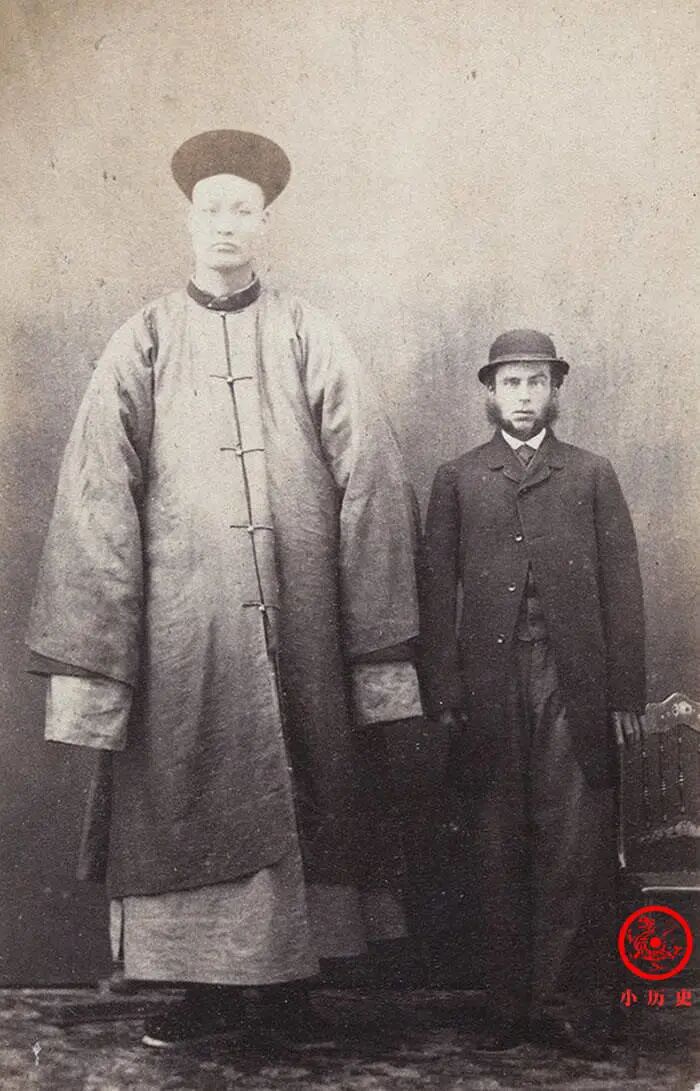 照片拍摄于1864年,詹世钗时年23岁,安徽婺源县(今属江西)人。因为他身高超过2米,被演艺猎头发现,带到欧美表演杂耍,成为知名演员。有关他的影像资料比较丰富,这张照片是他年轻时的留影,更显珍贵。