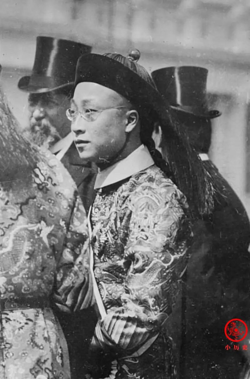 1904年,溥伦率团代表清廷参加了圣路易斯世博会的各项活动,还在华盛顿、纽约、芝加哥等城市进行了许多考察,受到当地华人的欢迎。照片中溥伦身穿蟒袍,戴着眼镜,显得温文尔雅。回国后被重用,任资政院总裁、农工商大臣等职。