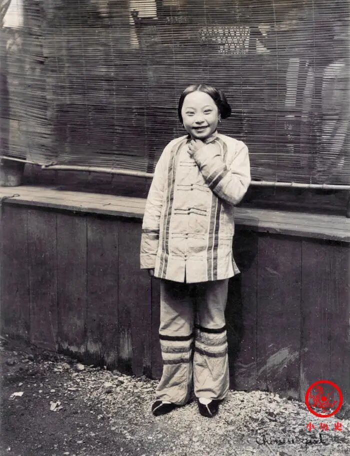 她笑得很灿烂,很幸福,100多年后仍然有强烈的感染力。让人感动欣慰的是,她没有“三寸金莲”,没有被缠足摧残,身体看上去比较健康,这也许正是她生活快乐的重要原因。
