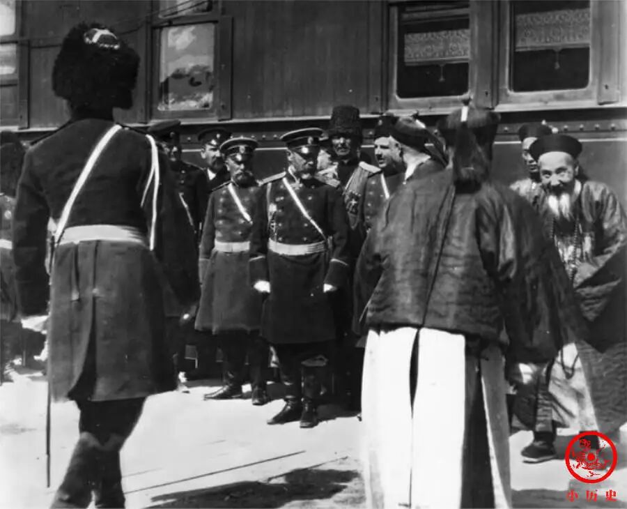 在某个接待外宾的场合,两个清朝官员相见之后互相行礼,那个留山羊胡的老头眉开眼笑,颇为有趣。他俩的品级应该差不多,否则的话,就是一方向另一方行磕头礼了。