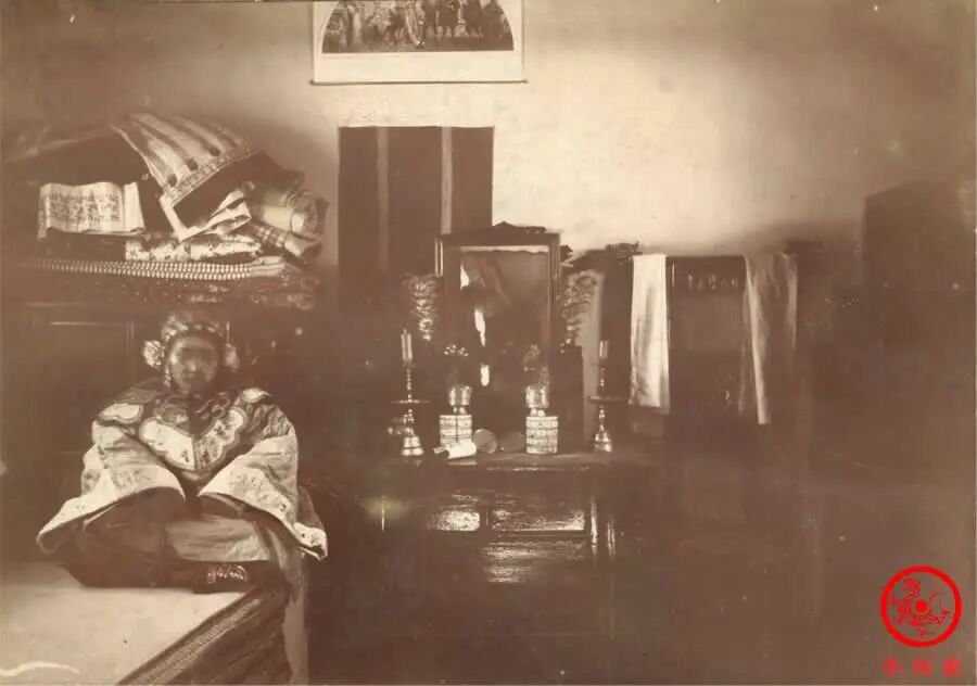 新娘坐在床上,不知作何感想?由于拍照时对焦不准,没有拍清楚她的面部,我们看不清她的表情。其实不难猜想她心中的无奈与悲凉(结合上一张照片她的神态),在这场婚姻中她就是一个“工具人”,今后她所面对的是无穷无尽的家务劳动和一次又一次的生育。