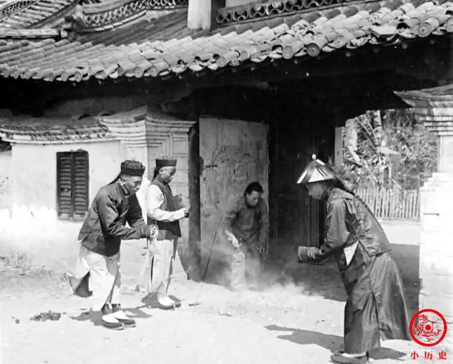 该女子出身平民,打扮朴实。摄影师着重展示了她的“三寸金莲”和“弓鞋”。我们不认为小脚有什么值得欣赏之处,但明清时代男人们非常看重这一点,那时候有一种选美比赛,叫“赛足会”,不是比谁长相漂亮,而是比谁的小脚缠得好看。