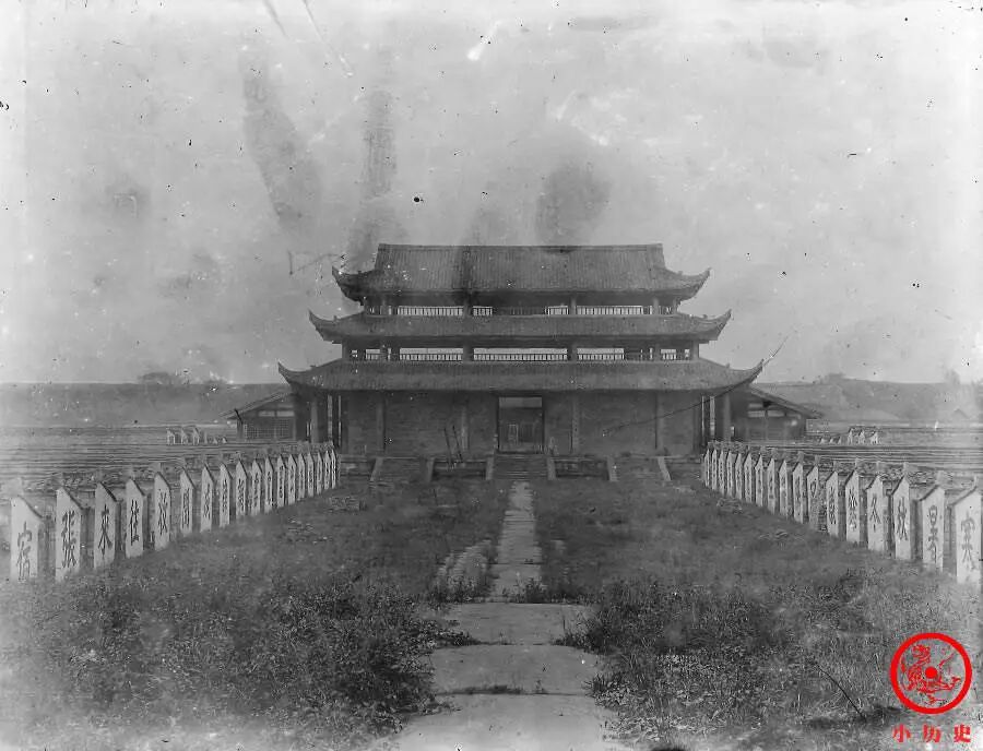 四川贡院是乡试之地,也就是考举人的地方,每逢子、午、卯、酉年八月在成都举行,共考三场。有清一代四川举行106科,共考中举人7652人。考棚按天、地、玄、黄等《千字文》顺序编号,同治、光绪年间可同时容纳13000多人考试。照片中的三层楼阁为明远楼,考官在此居高临下监考。