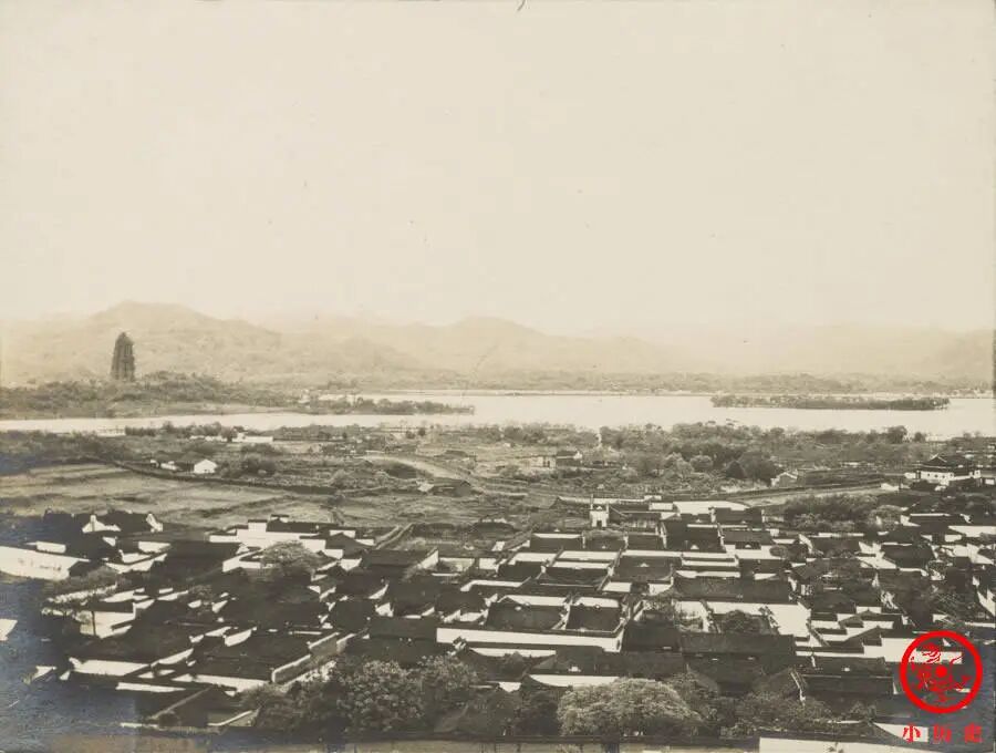 这张照片应该是站在城墙上向西拍摄西湖方向,我们可以清晰地看到湖心的小瀛洲和南岸的雷峰塔。