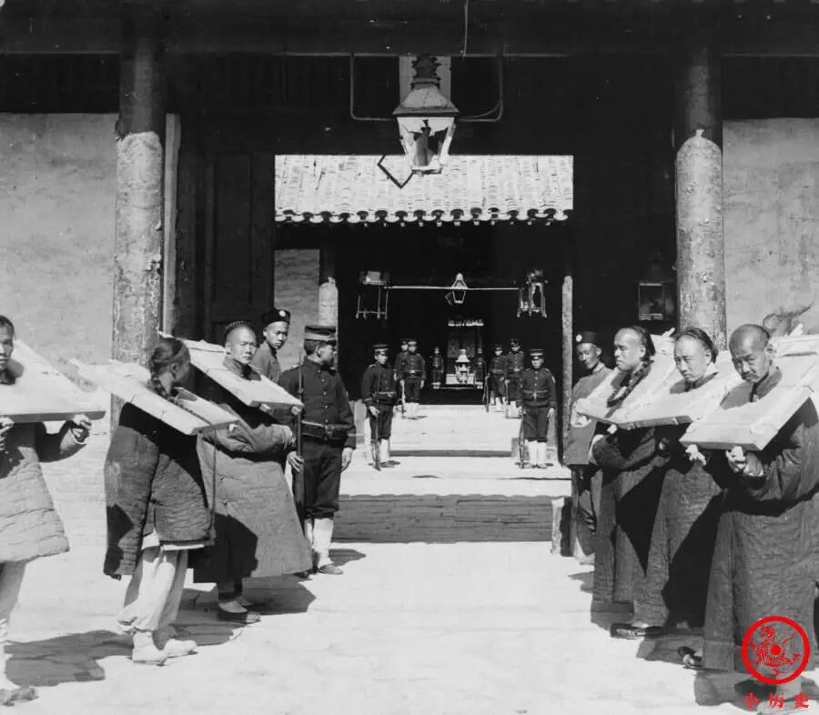 时为1901年,都统衙门并非清廷的机构,而是八国联军设立的殖民机构。这些被惩处的囚徒,也不一定犯了什么罪,可能只是被认定为义和团而已。此衙门下设巡捕队,专门搜捕义和团。
