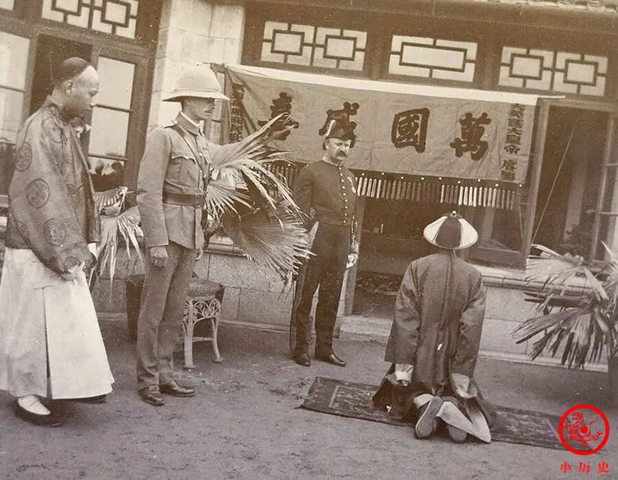 1902年8月9日,英王爱德华七世接受加冕。威海地方官吏来到英国殖民机构表示祝贺,不仅送上了“万国咸喜”的横幅,还献上了三跪九叩大礼,低眉顺眼之状令人痛心。1898年7月,英国强行租占威海卫,筑炮台、驻军队,对威海卫城以外的738.15平方公里的区域实行殖民统治。