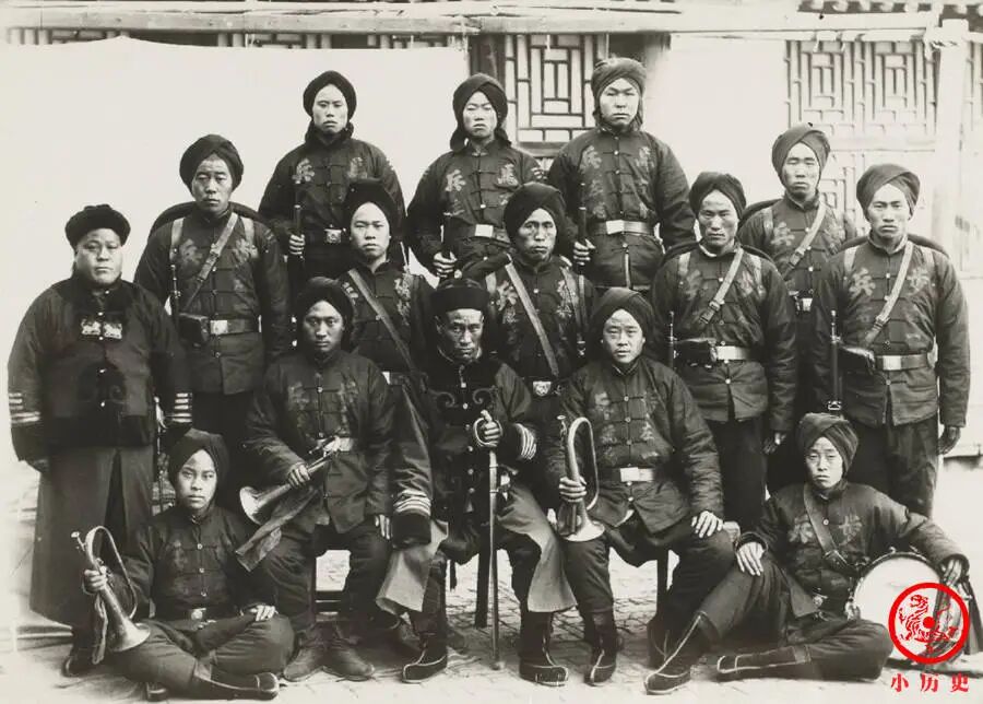 这些人来自多个军种,有步兵、马兵、炮兵、号兵等,显示了清军向近代化转型的尝试。