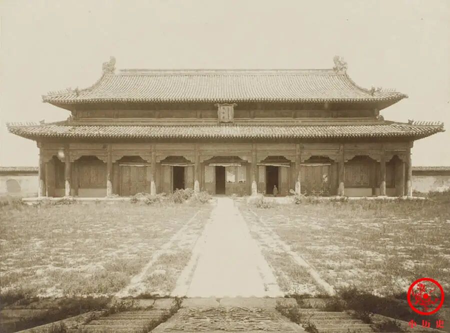 作为皇宫,紫禁城是金碧辉煌、高大巍峨的所在,清朝大部分臣民都无法想象它的宏伟壮丽和庄严肃穆。但是,这些照片直观地告诉我们,在慈禧太后、光绪皇帝出逃之后,紫禁城内杂草丛生、萧条苍凉,完全失去了皇家的气派和威仪。