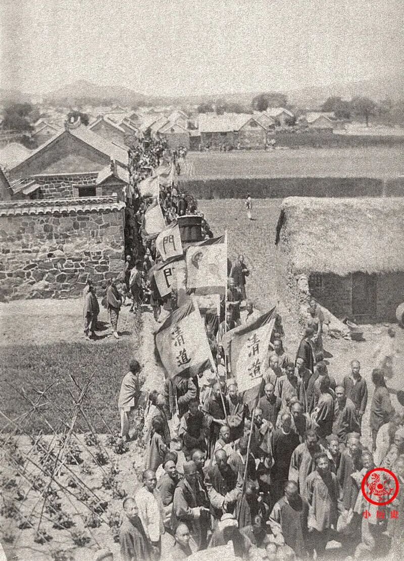 队列里有“清道”旗,有黄龙旗,有华盖,很可能是官老爷出巡。